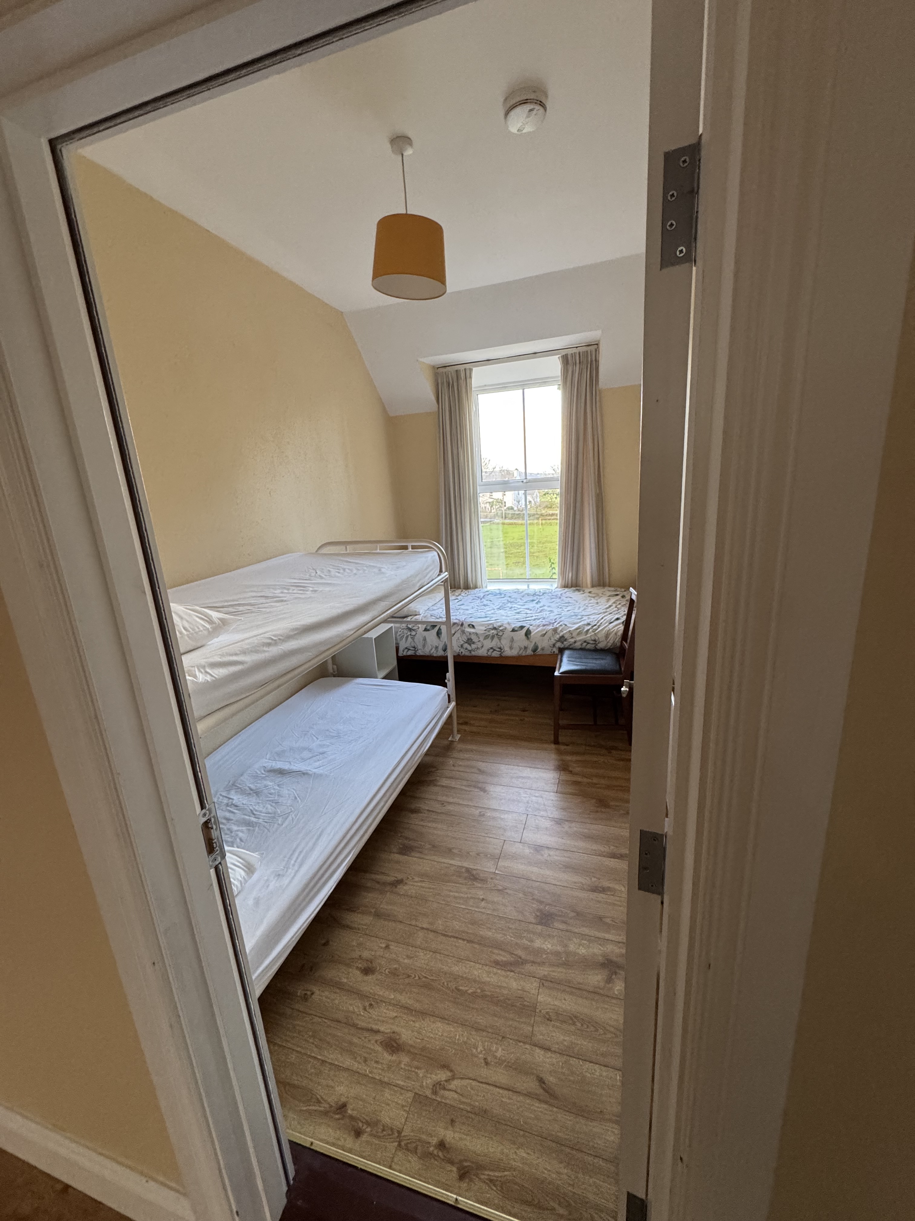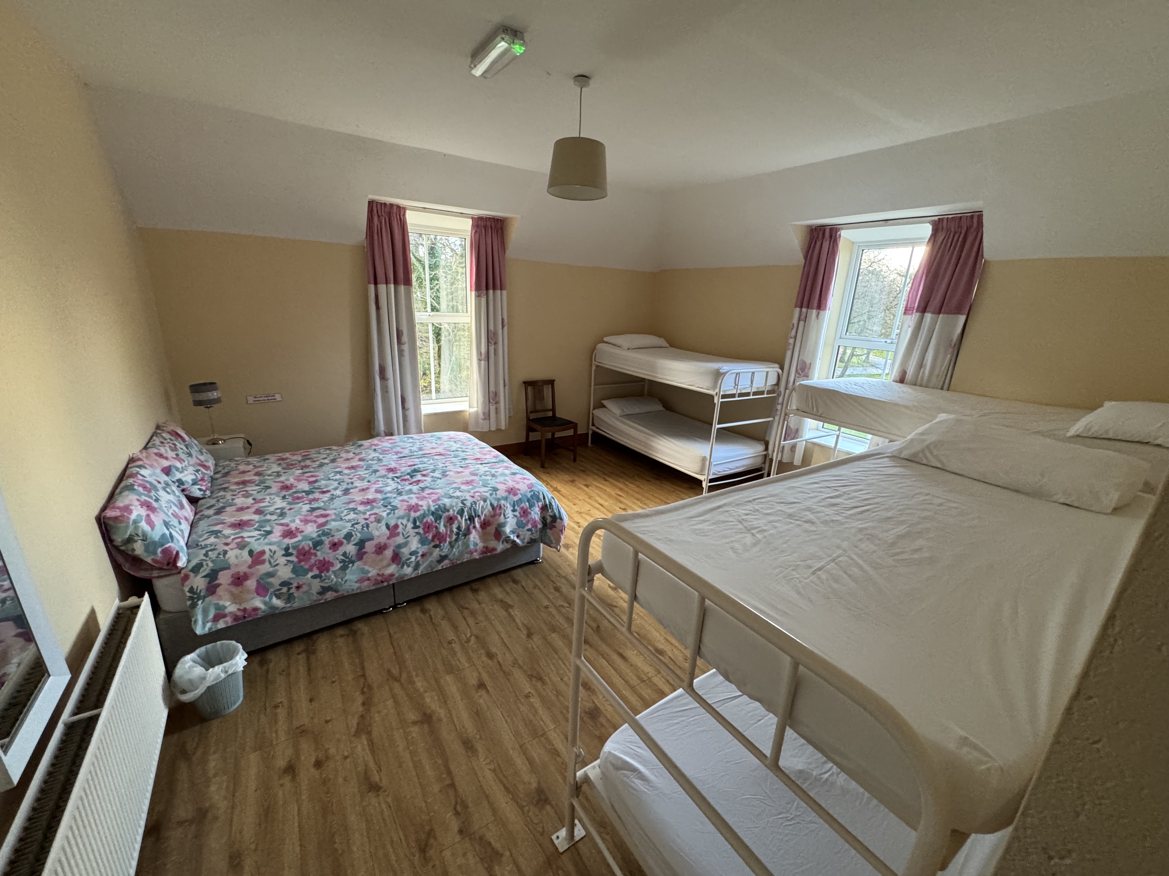 We can accommodate up to thirty-five people. There are four big bedrooms, each with three bunk beds and a double bed. As well as one with a single bed and one bunk bed