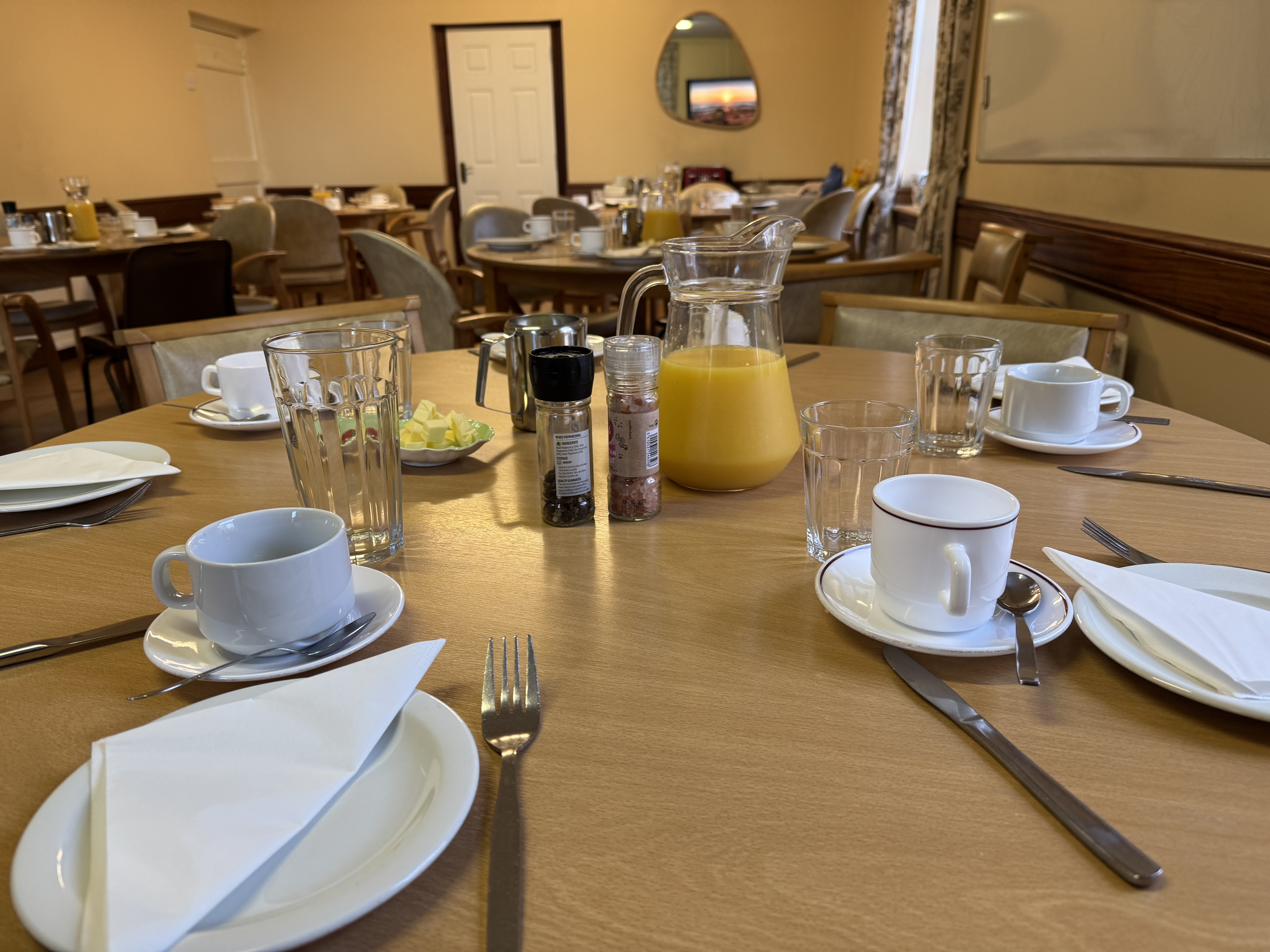 We have three good side rooms for dining and for breakout sessions.